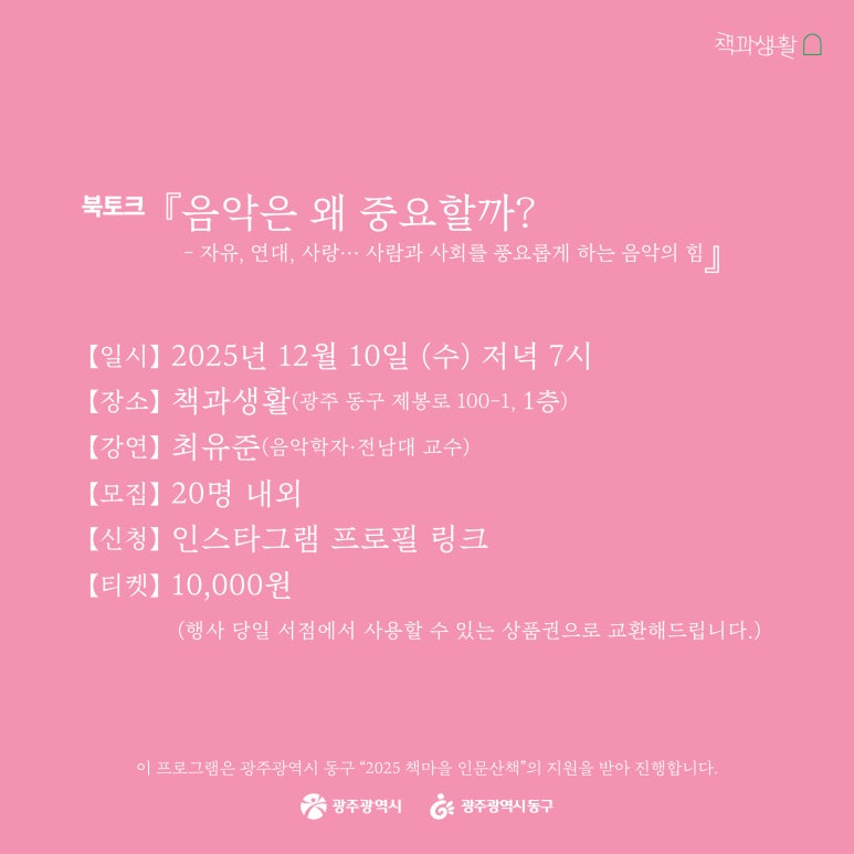 ※ 이 프로그램은 광주광역시 동구 “2025 책마을 인문산책”의 지원을 받아 진행합니다.